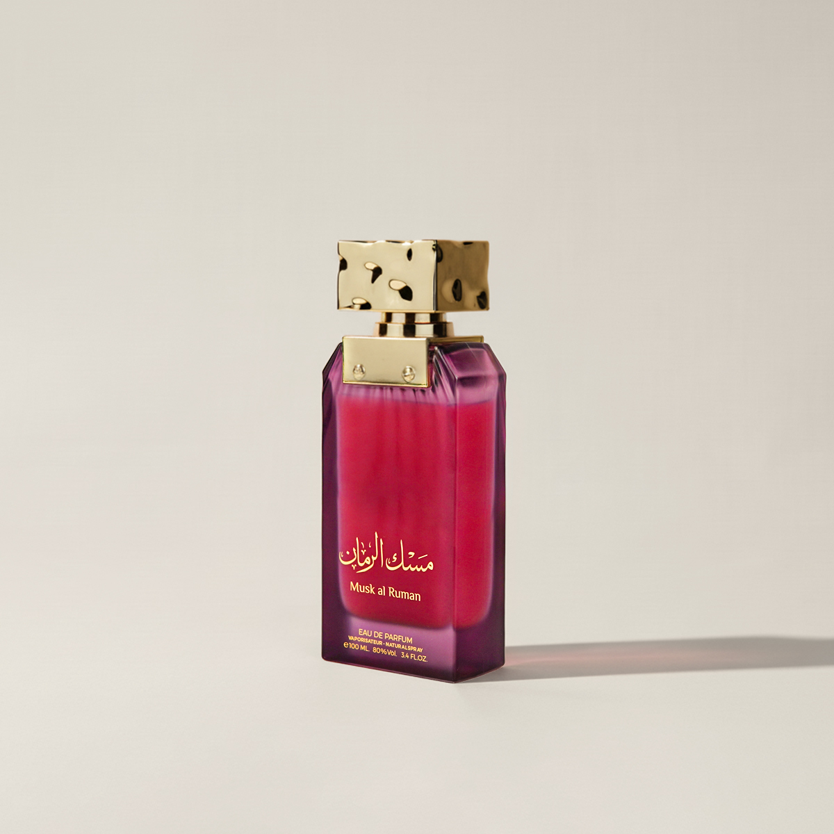 عطر فاخر يجمع بين عبق المسك الشرقي الأصيل وعصارة الرمان الملكي. يتميز بتصميم مميز على شكل زجاجة أنيقة بلون أحمر رماني عميق يعكس الفخامة والغموض. الغطاء الذهبي المميز بنقشة جلد الفهد (Leopard print) يضفي لمسة جريئة وعصرية على التصميم الكلاسيكي.