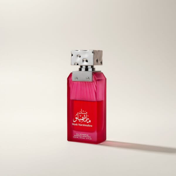 الوصف: عطر فاخر يجمع بين حلاوة المارشميلو الناعمة وعبق المسك الشرقي الأصيل. يتميز بتصميم ساحر يعكس تدرجاً لونياً رومانسياً من الوردي الفاتح إلى الأحمر الداكن، مما يوحي بالحلاوة والدفء في آنٍ واحد. الغطاء الفضي المميز بنقشة جلد الفهد (Leopard print) يضفي لمسة جريئة وعصرية على التصميم الأنثوي.
